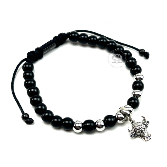 Silver Bull, Onyx & Silver Beads Bracelet
