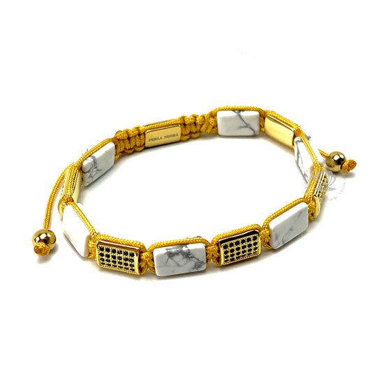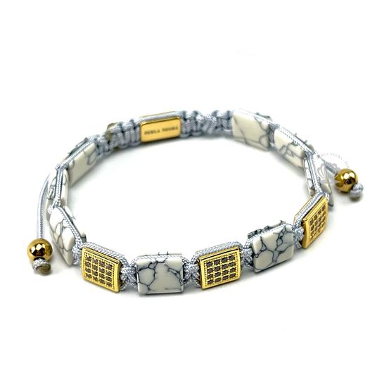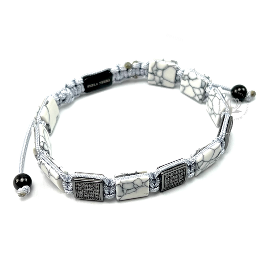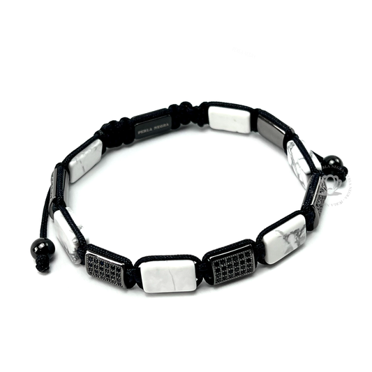 White Howlite & Black Cz Rectangule Bracelet