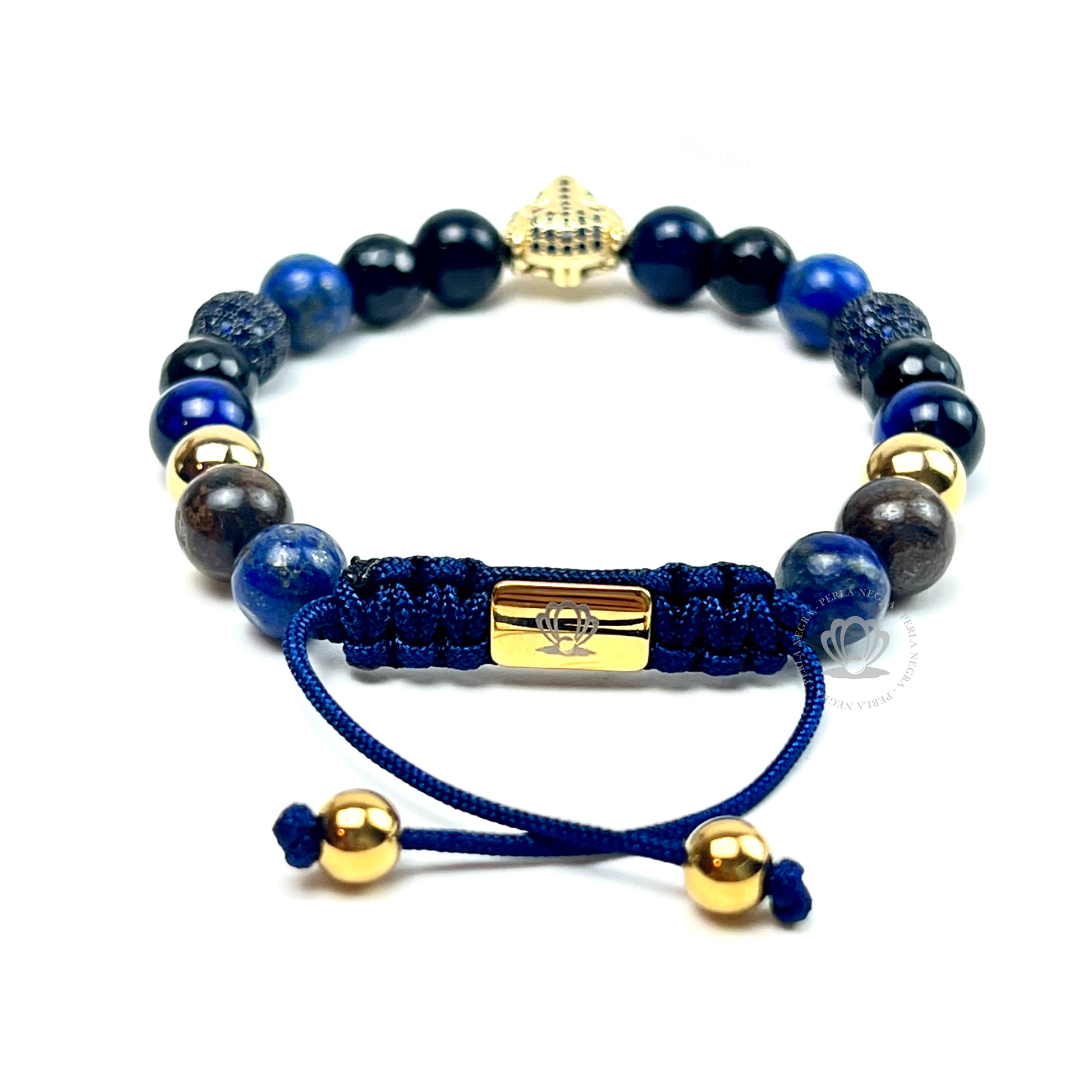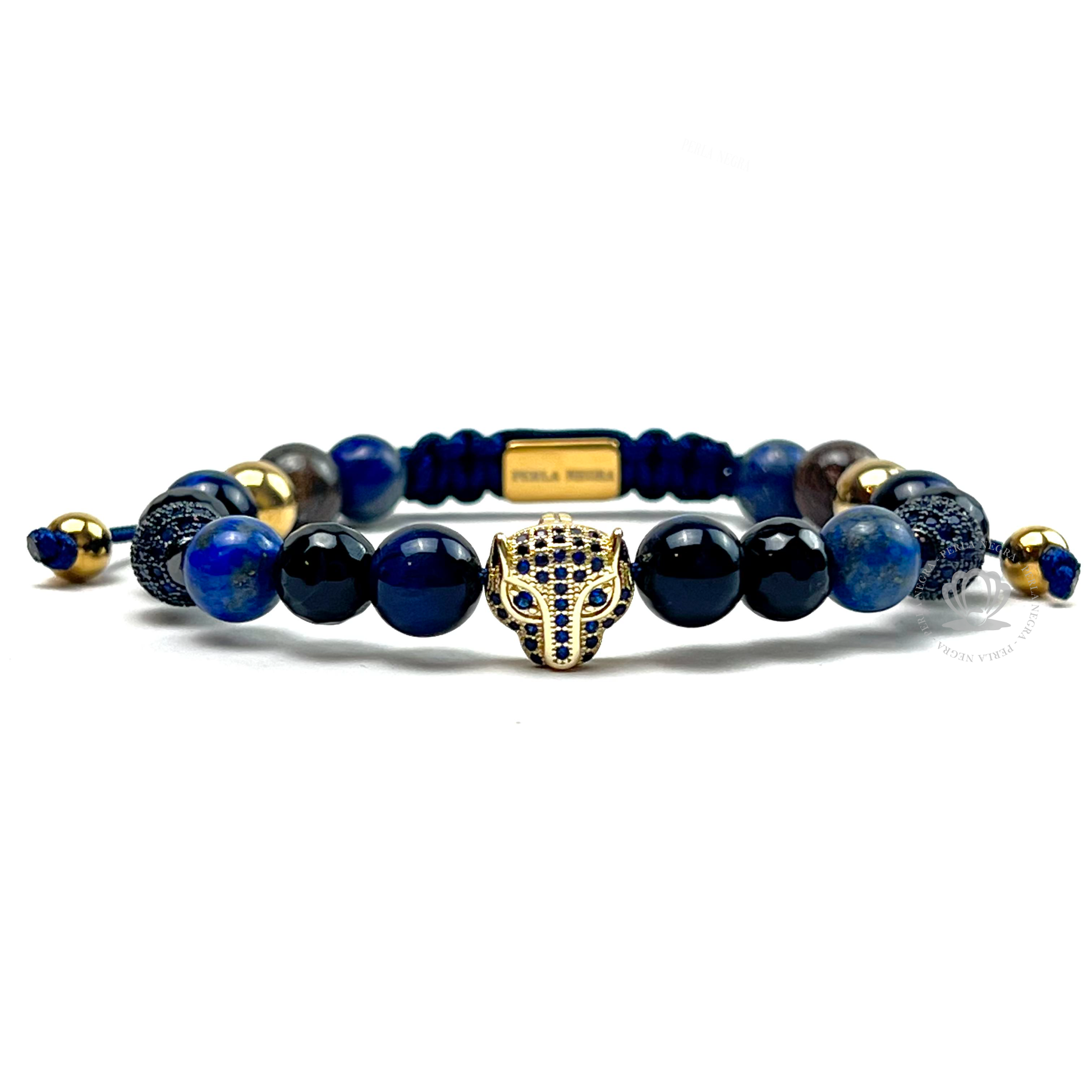 Yellow Gold Jaguar Blue Tiger Eye, Rhodium & Agata Bracelet